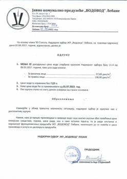 Ова одлука донета је услед поскупљења трошкова производње и прераде чисте пијаће воде, па вас овом приликом љубазно позивамо да извршите баждарење или замену својих водомера, у циљу рационалније и ефикасније потрошње воде.
