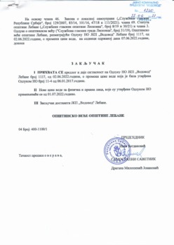 Поштовани потрошачи, обавештавамо вас да ће се од 01.07.2022. године у складу са одлуком Надзорног одбора ЈКП “ВОДОВОД” Лебане и закључком Општинског већа општине Лебане, примењивати нове цене воде и то:
