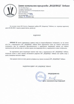 ЈКП Водовод/ јун 22, 2022/ Информације