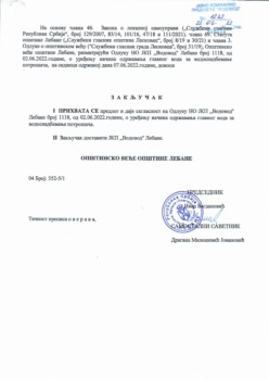 У складу са одлуком Надзорног одбора ЈКП “ВОДОВОД” Лебане и закључком Општинског већа општине Лебане, УРЕЂУЈЕ СЕ начин одржавања главног вода за водоснабдевање потрошача, на тај начин што ће у надлежности ЈКП „ВОДОВОД“ Лебане бити одржавање само до главног прикључка потрошача, док ће нормално функционисање и одржавање водоводне мреже од главног прикључка до вентила који се налази одмах иза водомера, бити у надлежности самог потрошача.